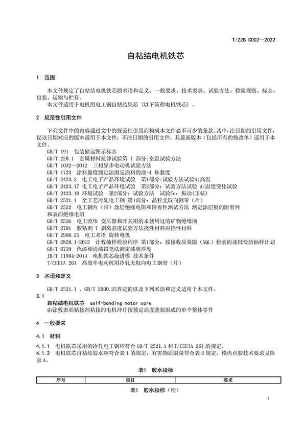 本文件適用于電機用電工鋼自粘結鐵芯 (以下簡稱電機鐵芯) 。